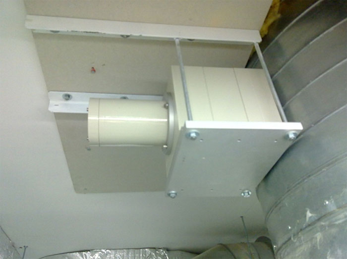 Sveukupna količina zraka koji ventilacijski sustav ispušta u slobodnu atmosferu trajno se kontrolira obzirom na moguće radioaktivno zagađenje. Na vrhu izlaznog dimnjaka smješten je spektroskopski sistem za mjerenje gama zraka. Sistem se sastoji od detektora gama zraka (NaI kristal), pojačivača svjetla (fotomultiplikatora) te višekanalnog analizatora. Informacije o svim mjerenim intenzitetima zračenja sakupljaju se na specijaliziranom računalskom sustavu u kontrolnoj prostoriji ciklotrona. Svi podaci o radiološkoj situaciji se kontinuirano prate, a zapisi o radiološkoj povijesti trajno se pohranjuju. Time je osigurano trajno praćenje, ali i trenutačna intervencija operatera u slučaju nepredviđenih događanja.